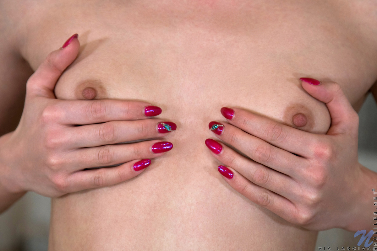 Via Lasciva 金髪の女子大生が指での自慰前に小さな胸を見せる - 写真 10 / 16