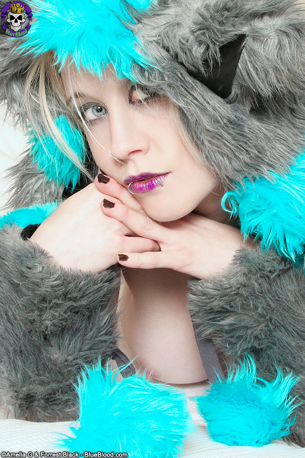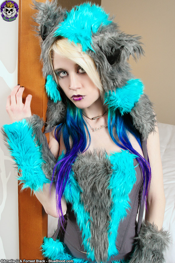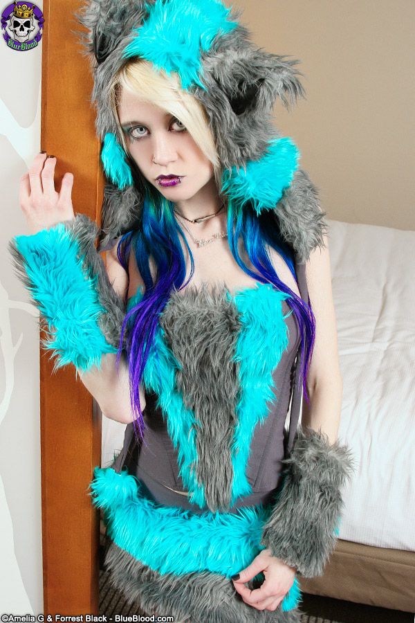 セクシーなミアがコスプレ衣装で胸とアソコを見せる