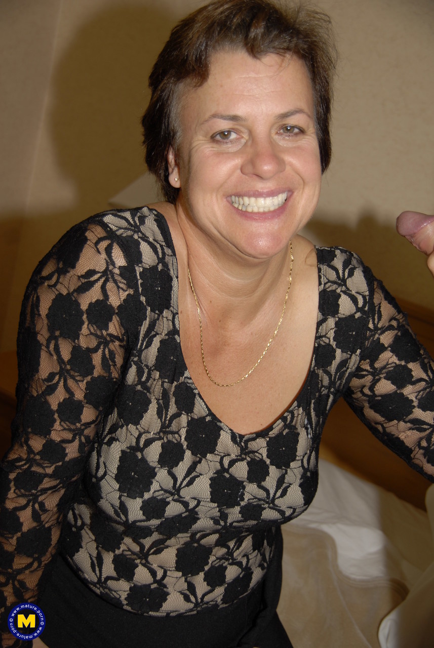 ヨーロッパの着衣シーンで熟女ベッツィーが若い種馬にフェラと手コキ、服に顔射受ける—ショートヘアの茶髪熟女が服にザーメンフィナーレを届ける