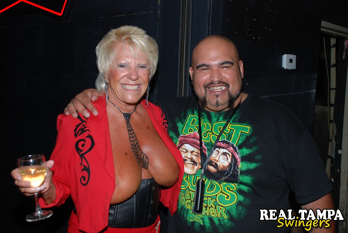 Mature Tracy Lick gives sexy milf blowjob in wild amateur swinger party, flashing big tits and spreading pussy in public with beautiful over-60 women.