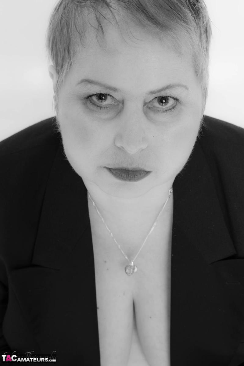 上品なソフィア:ショートヘアの熟したぽっちゃり女性が垂れた乳房を見せる - ギャラリー情報