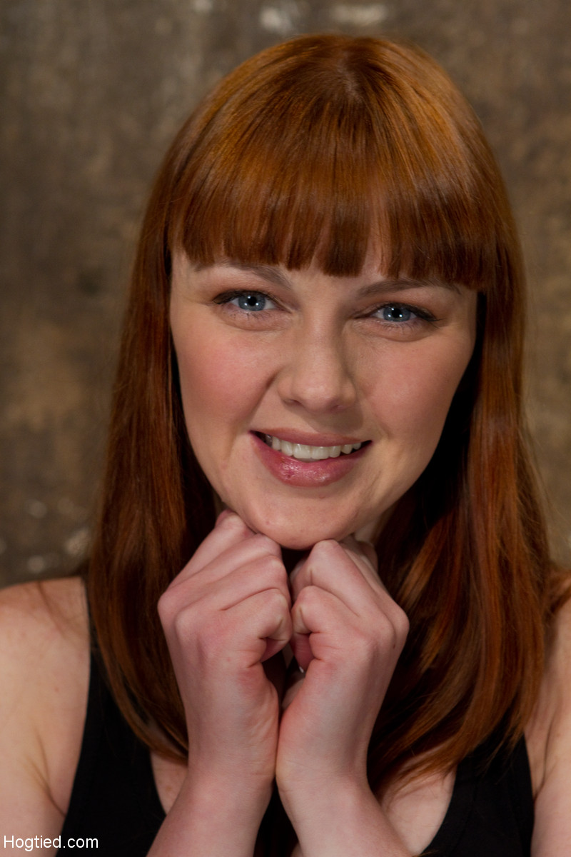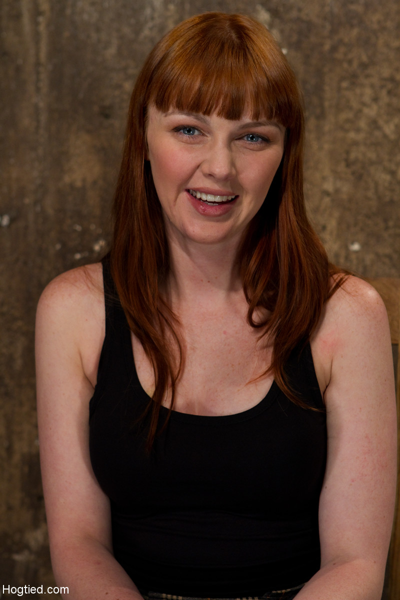 赤毛のマリー・マクレイが緊縛され、完璧な自然なミルフィー乳房や高身長の小柄な体をフラントする、生のBDSM画像。
