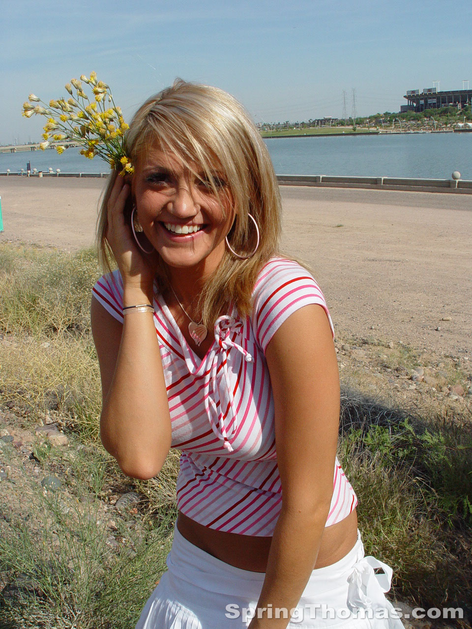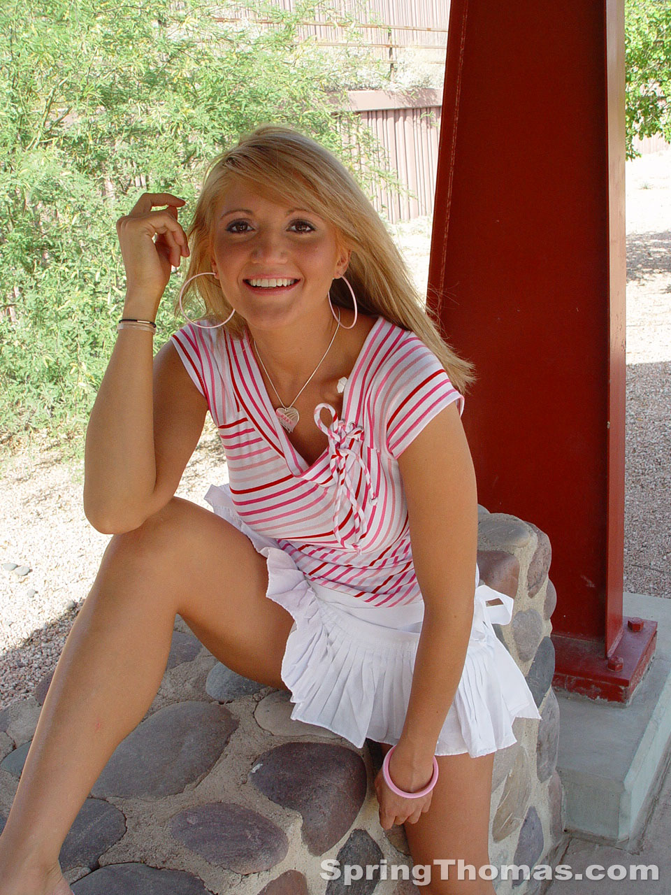 金髪のティーン・スプリング・トーマスが公共の歩道で裸の尻を露出 - ギャラリー情報