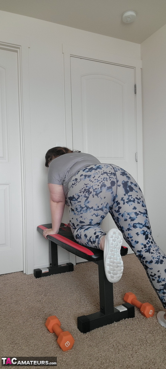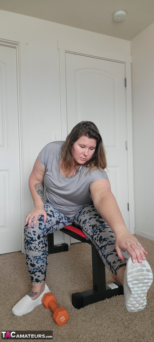 巨乳でぽっちゃりした素人のクリス・アンが自宅ワークアウト中に全裸になる - ギャラリー情報