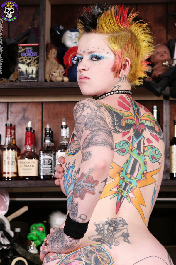 タトゥーのあるオルタレイチェルがバーで網タイツで裸でポーズを取る - ギャラリー情報