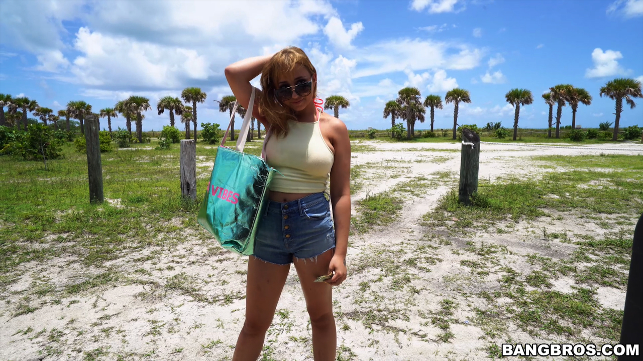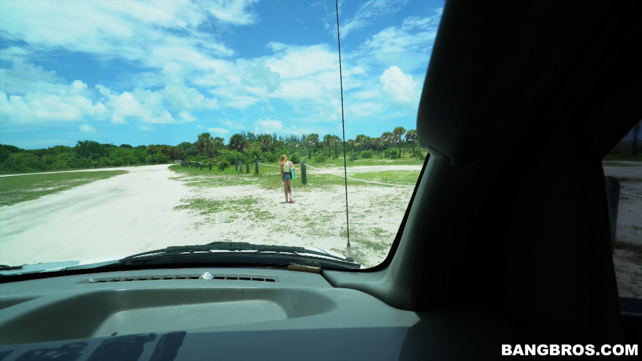 巨乳金髮少女マリリン・マンションがバックシートのリアルセックスで天然巨乳を誇示、小柄な素人が野外で硬いチンポに騎乗。