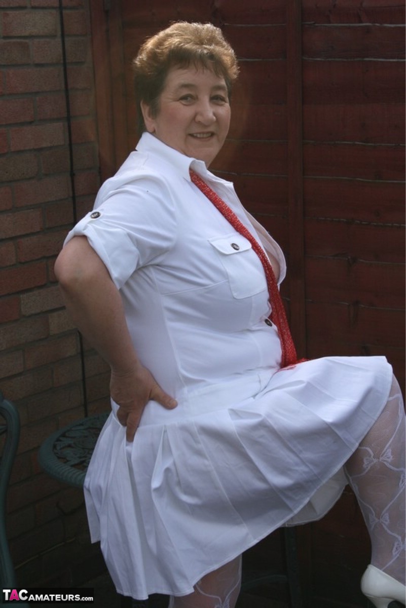 熟したぽっちゃりKinky Carolが庭で下着とセクシーなナイロンまで脱ぐ - ギャラリー情報
