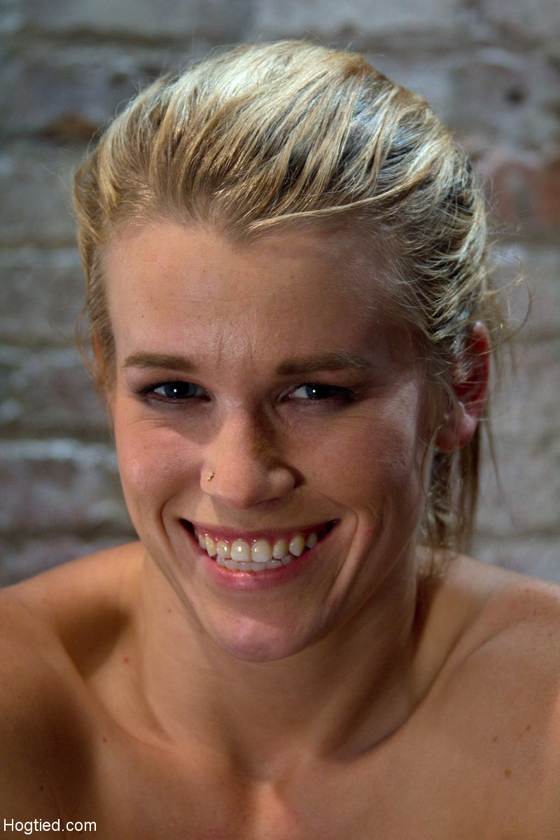金髪ポルノスターAiden AspenがタイトなBDSM拘束で拘束され、恥辱を受け、服を着たままのマンコが露出され、セクシーな天然のおっぱいと足が披露されている。