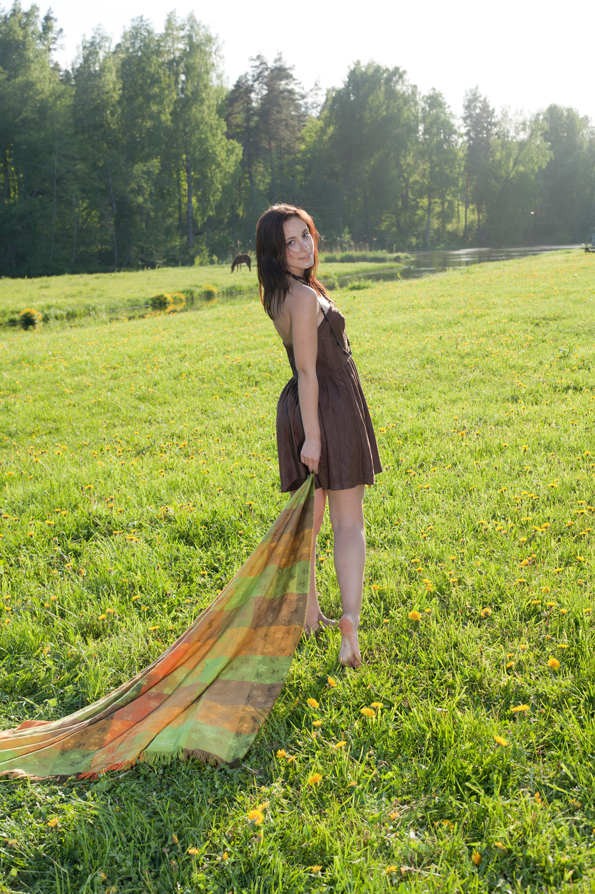 カリナNがMet Artのために夏ワンピースを脱ぎ、屋外で小さな胸と長い脚を披露;無邪気な10代ヌーディストがスカートで開脚、裸の熱い欧州美女がソログラマー。