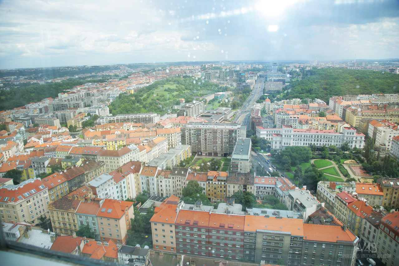 アジアの十代のアグネスはタンパータワーで彼女の小さな胸と膣を披露する