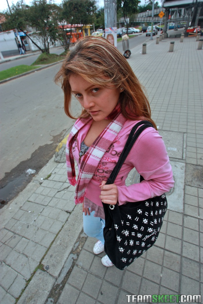 内気な蒼い赤毛のティーンエイジャー、リリー・ロペスが室内で服を脱ぎ、スーパー細いラテン系の尻とそばかすのあるピンクのオマンコをスニーカーの中で広げる。