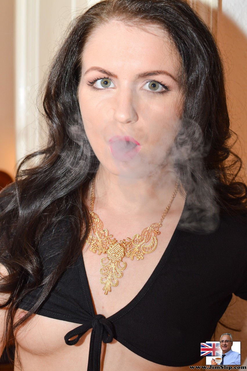 支配的なローラ・エンジェルがコスプレで男性奴隷をペギングしながら喫煙