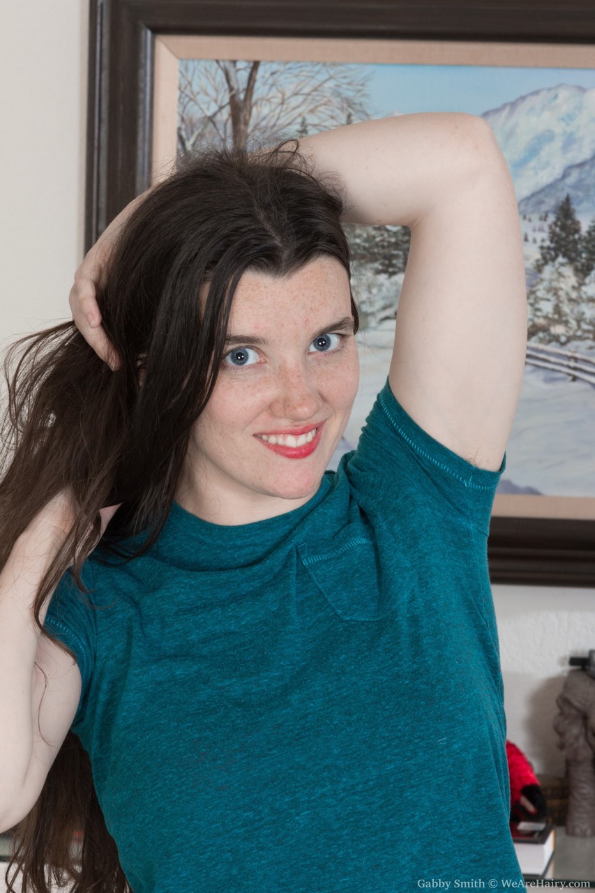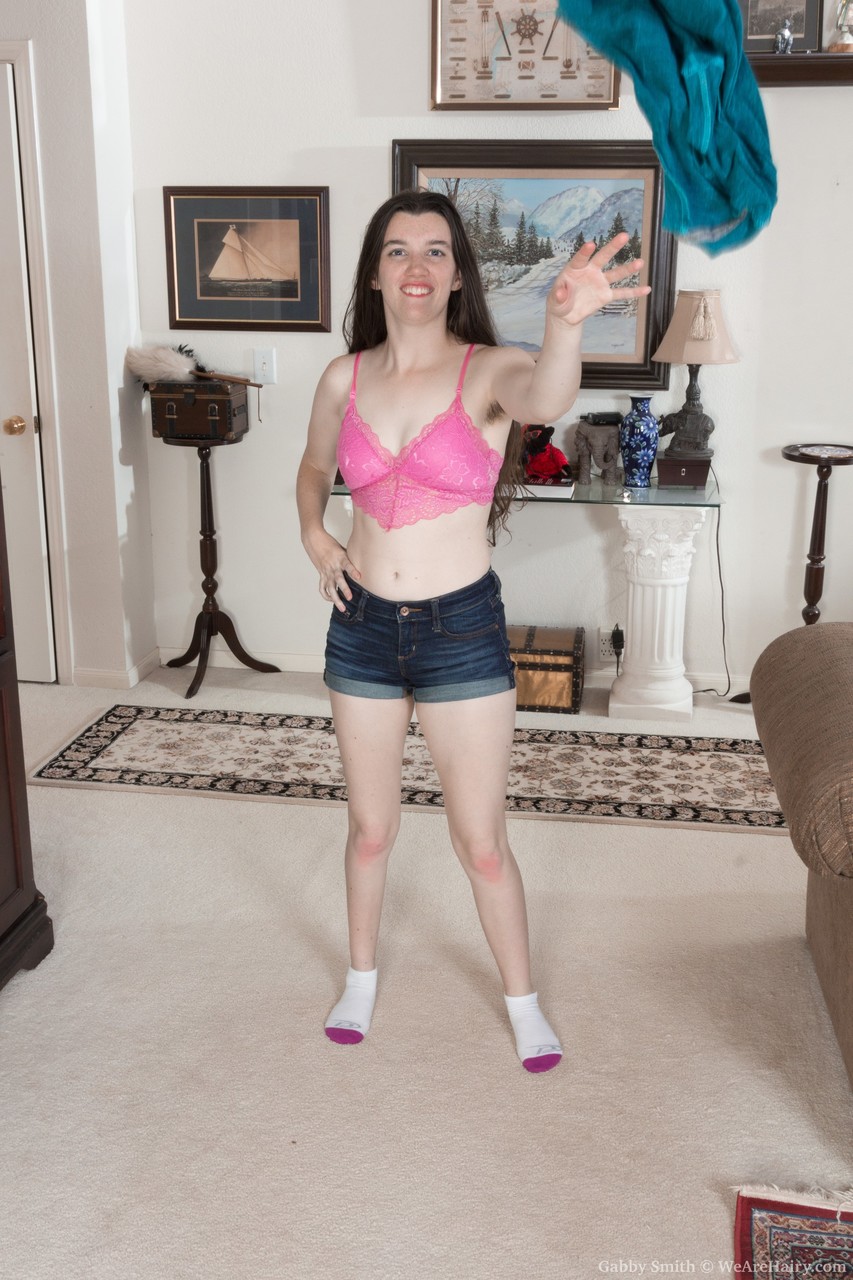 フリーキーブルネットのガビー・スミスがストリップして毛深いマンコを見せる - ギャラリー情報