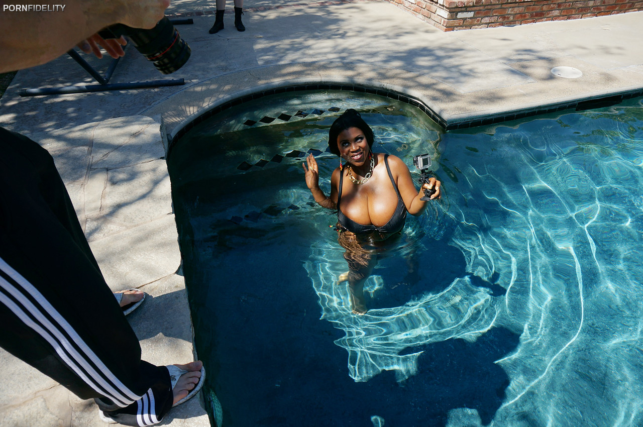 巨乳黒人マセラティXXXがプールで巨大な胸を見せつける - ギャラリー情報