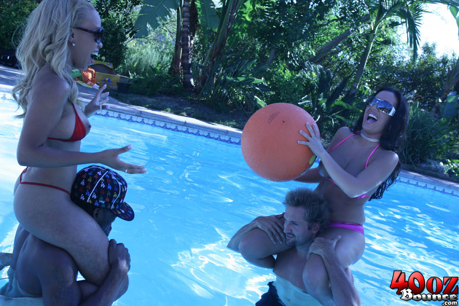 黒人女性メルローズ・フォックスとレイチェル・ライアンが屋外で黒人男性の巨大なペニスに犯され、口内射精と顔射を交換し、プールサイドでの乱交後には精液を口に受け入れる。