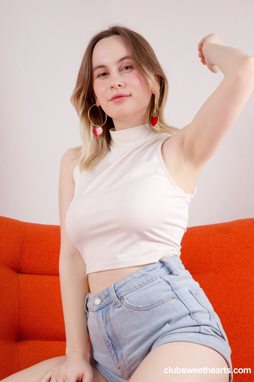 いたずらっ子ティーン・デニーが巨乳を披露してソロでマンコをいじる - 写真 2 / 21