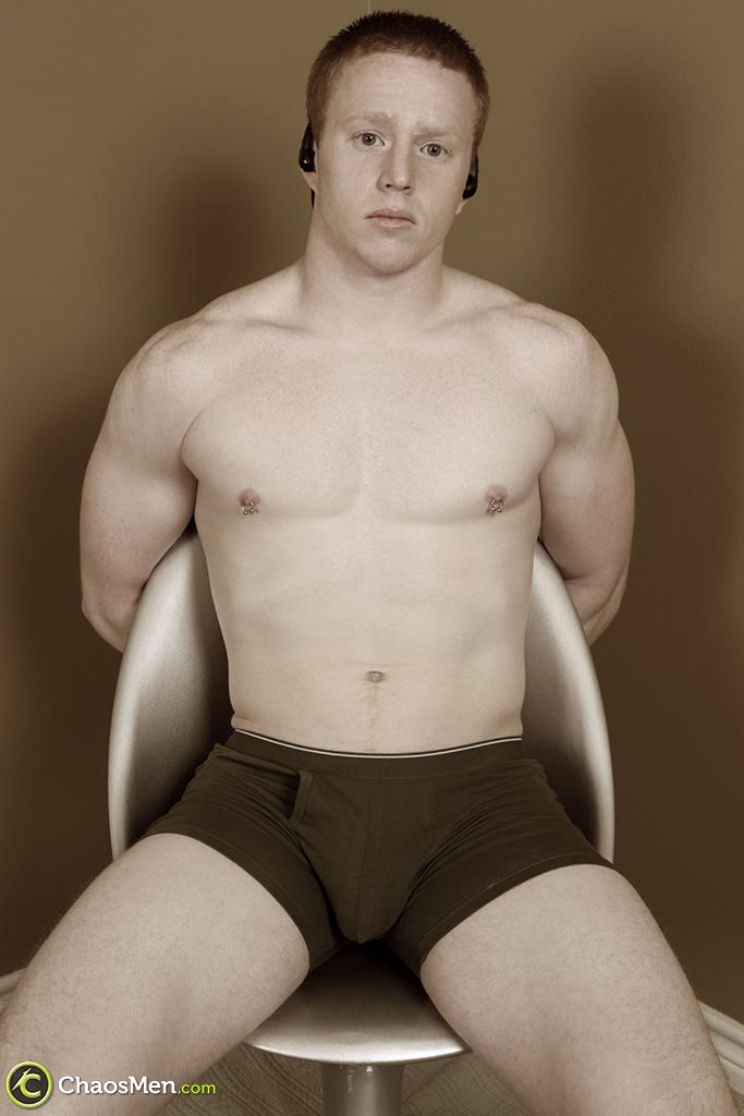 Blindfolded ginger twink Tatum Parks moans as kinky gay Brant worships his hairy cock with skilled hands and hungry mouth, building to a messy cumshot finish.