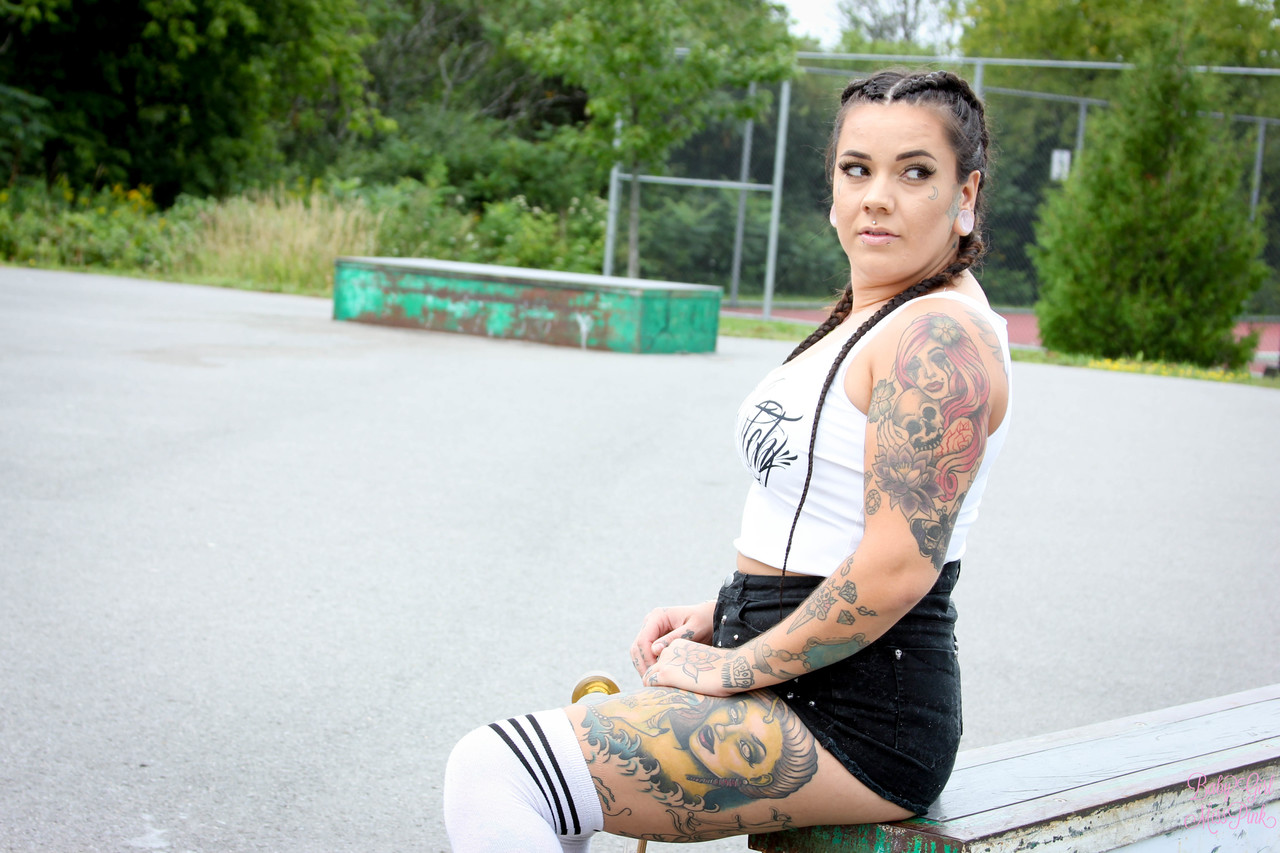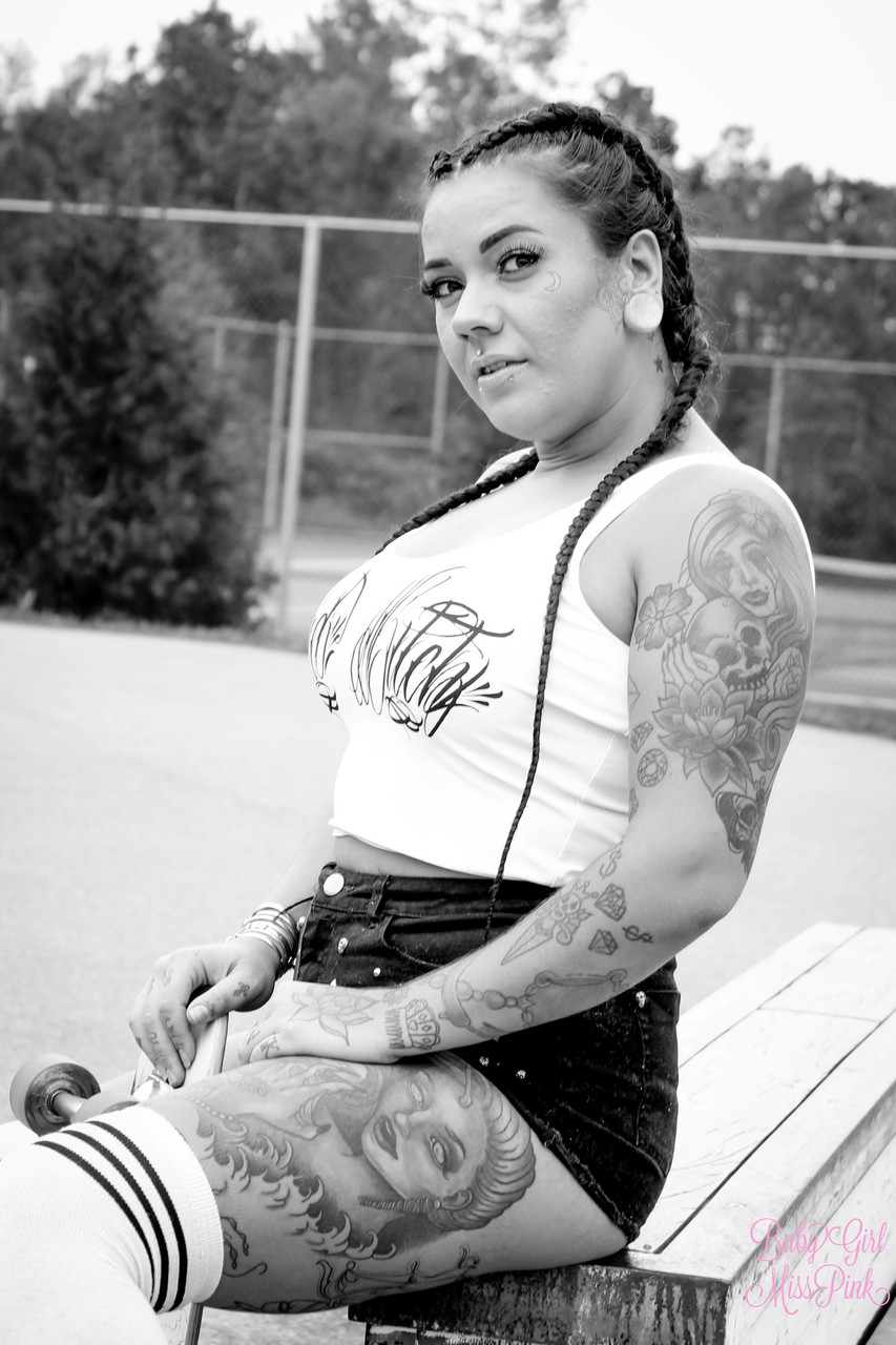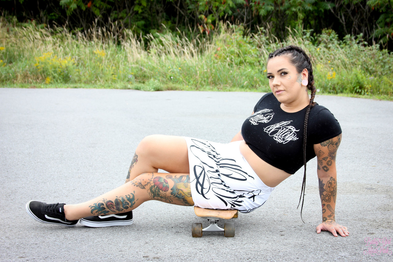 野外ポージング ぽっちゃりスケーターベイブMiss Pinkのセクシーな衣装 - ギャラリー情報