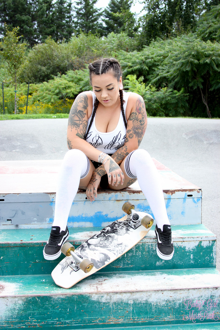 ホーム BBW 野外ポージング ぽっちゃりスケーターベイブMiss Pinkのセクシーな衣装