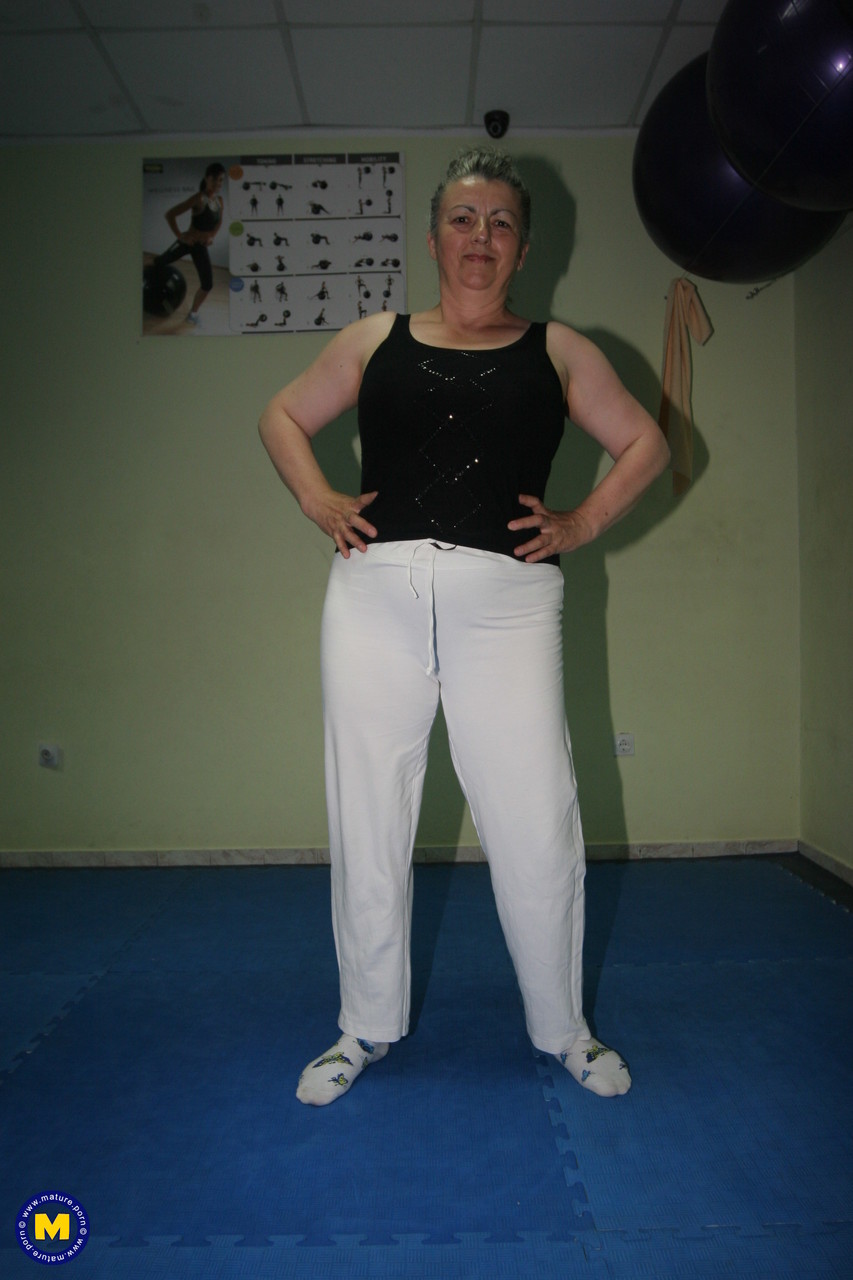 熟したアマチュア女性がジムで運動し脱衣する - 写真 2 / 21