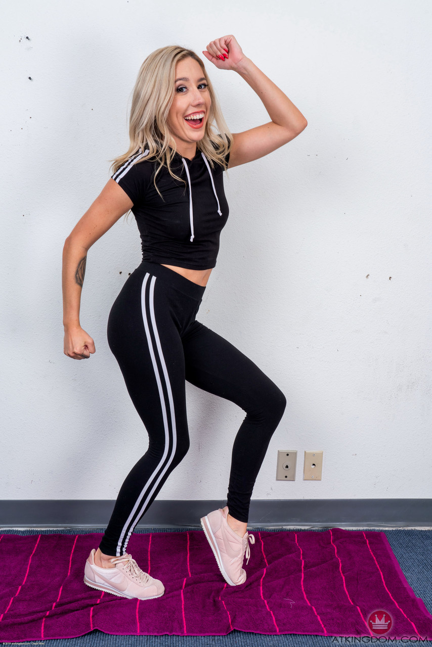 セクシーなブロンドのペイスリー・ベネットは、ATKギャラリーでヨガパンツとレギンスを脱ぎ、巨きな自然な乳房、広がったPAWGのお尻、そして美しい膣をジムシューズの中で見せます。