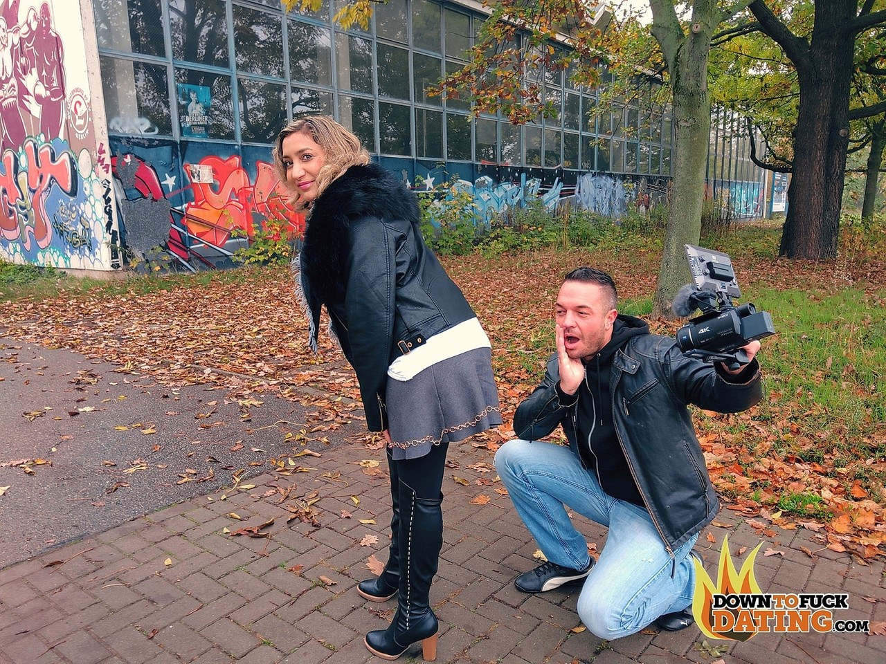 薄汚い黒髪のダンカ・ダイヤモンドがブーツとハイヒールで公衆の面前で激しいピストンを受ける—ディープ背面、べちょべちょフェラ、外でドロドロザーメンフィナーレ。