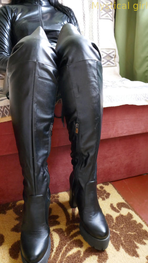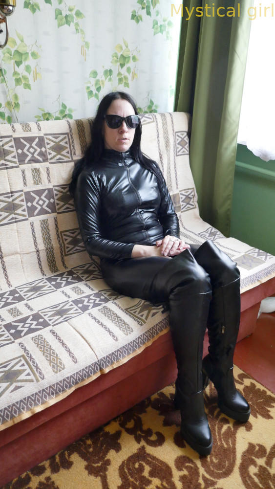 素人の黒髪ボンバシェが全身レザー、サイハイブーツ、ダークシェードで決める——フェティッシュグラム、ハイヒールチーズ、ヌードなし、マックスアティチュード。