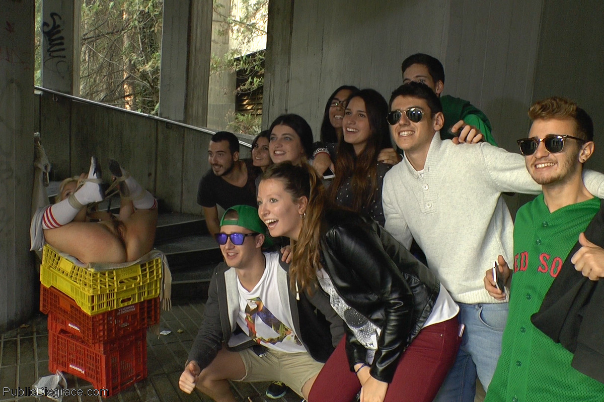日本人十代みつき・スウィートと金髪サンドラ・ロマインが公開BDSM屈辱に耐える:毛深いアジアンまんこを英国ボンデージ街に曝露、十代服従、アジアン公開恥辱、日本BDSM写真