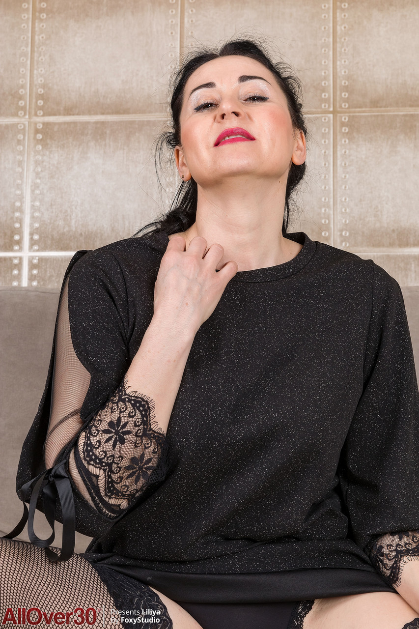 熟れたリリヤがストッキングで巨乳と剃ったマンコを見せつける - 写真 11 / 21
