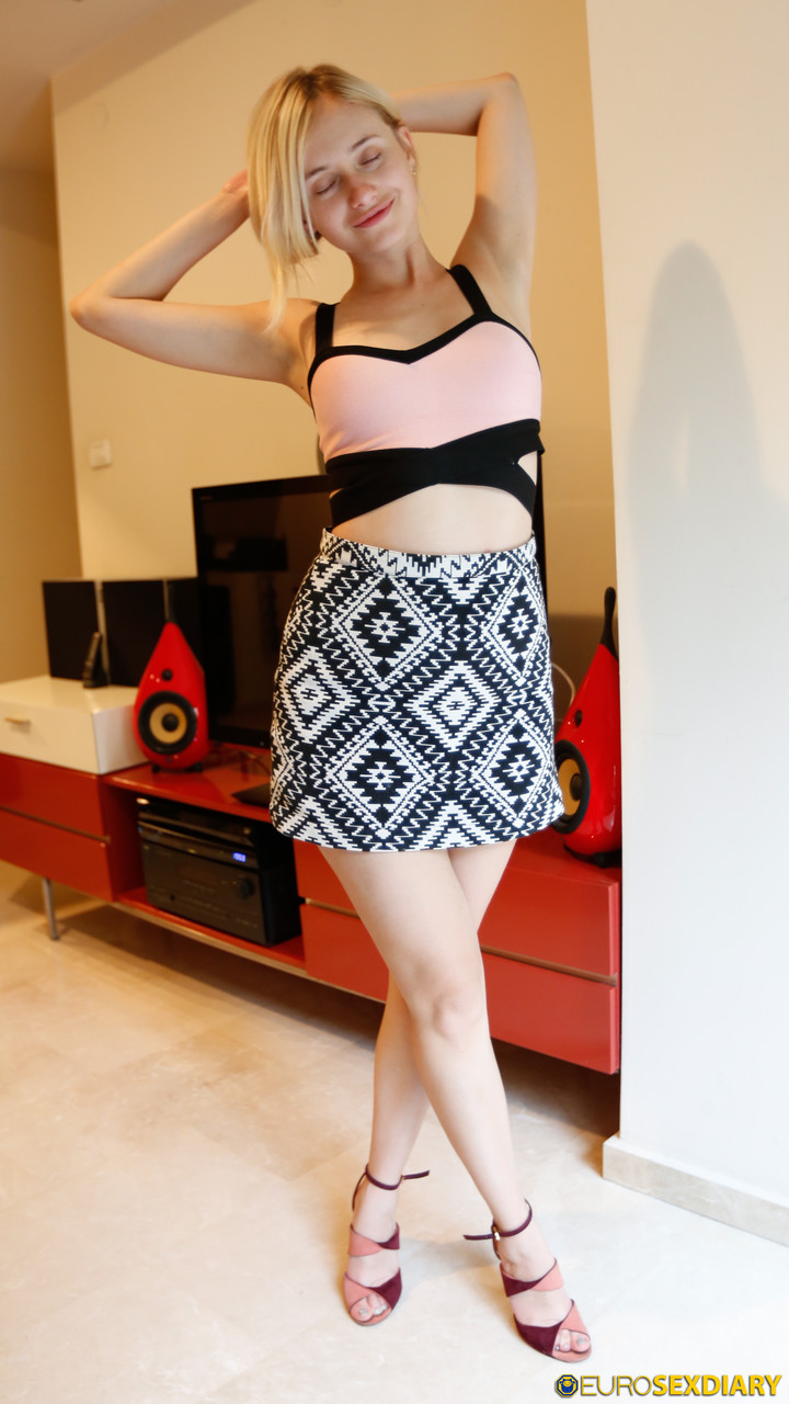 金髪のサニーがスカートをめくり、パンティーの中で挑発して、POVのコンドームセックスのために開脚するのを見てください - タイトなティーンのオマンコがハードコアでドリルされ、アマチュアの初SEXが近距離で撮影されます。