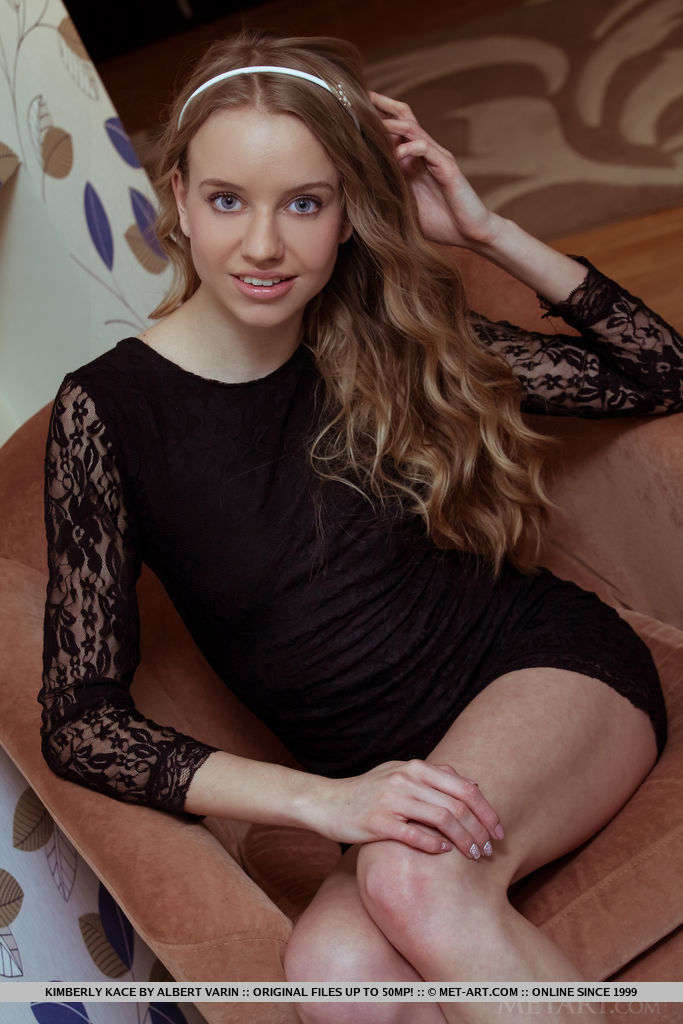 金髪のティーンエイジャー、キンバリー・ケイスは、小さな黒いドレスを脱いで、剃毛されたマンコ、かわいい小さな乳房、長い足、完璧なPAWGのお尻を、ヌードの魅惑的なポーズで見せます。