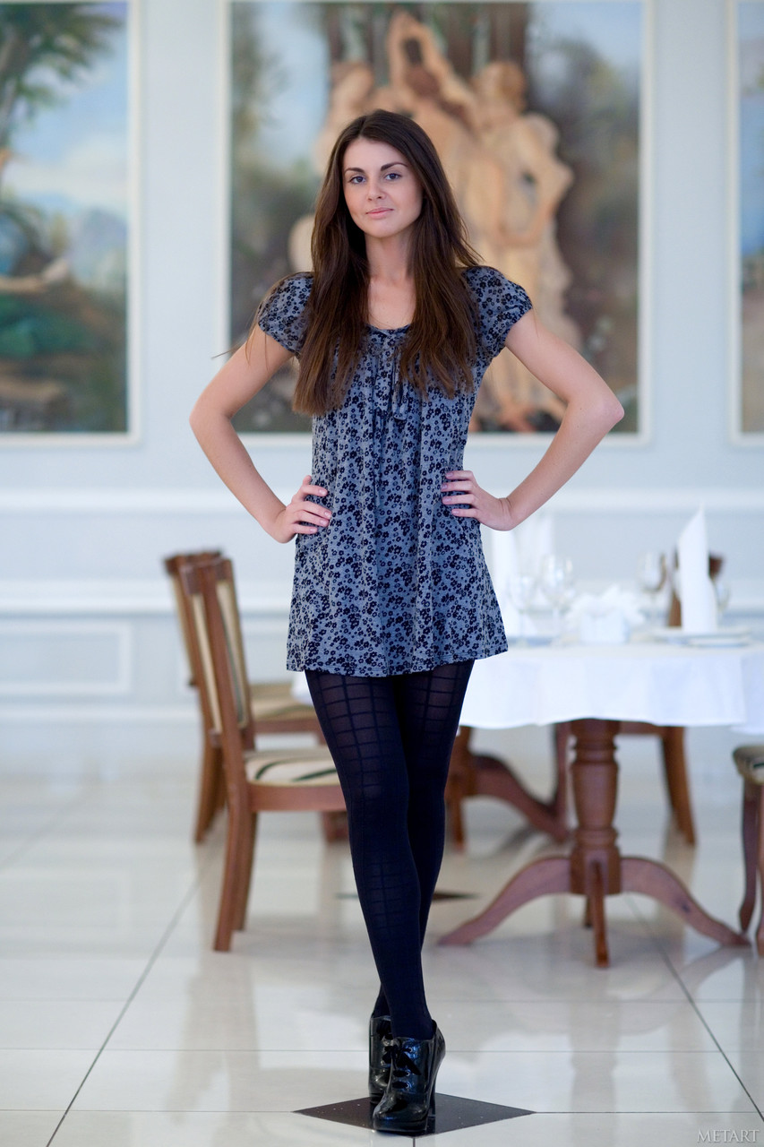 グラマラスティーン Astrud A が完璧なボディを披露、スカートで脚を開き、美しいマンコとキツいアナルをメットアートの熱いヌード撮影で丸出しにする。