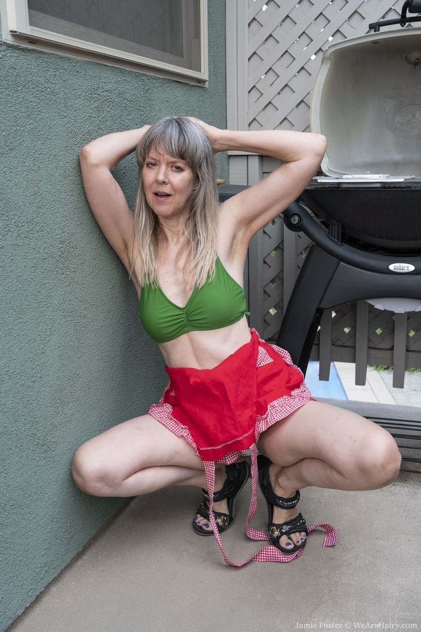 熟女シェフのジェイミー・フォスターが自らの毛深い秘部を接写で広げる - ギャラリー情報