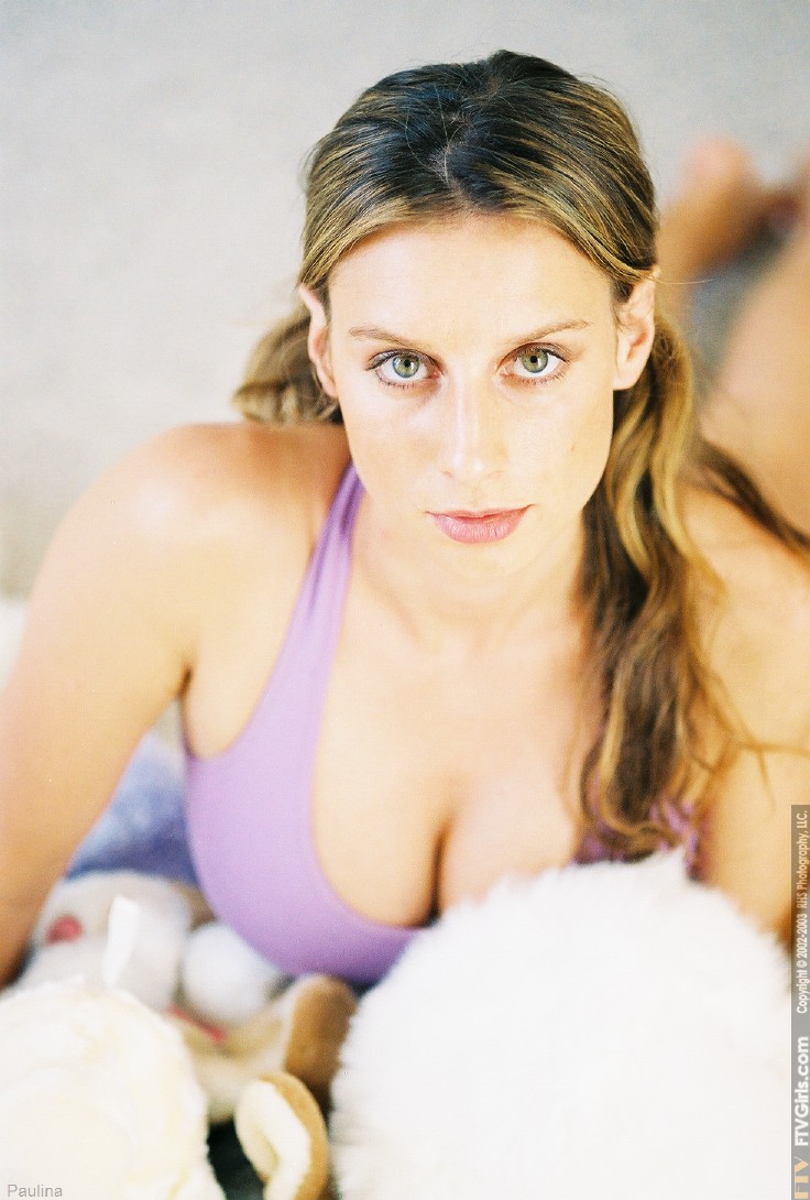 緑の瞳の褐色髪美女・パウリーナが全裸になり、完璧な美尻と天然巨乳の長い勃起した乳首、そして締まったマンコを露出するアマチュアグラマーソロセッション。