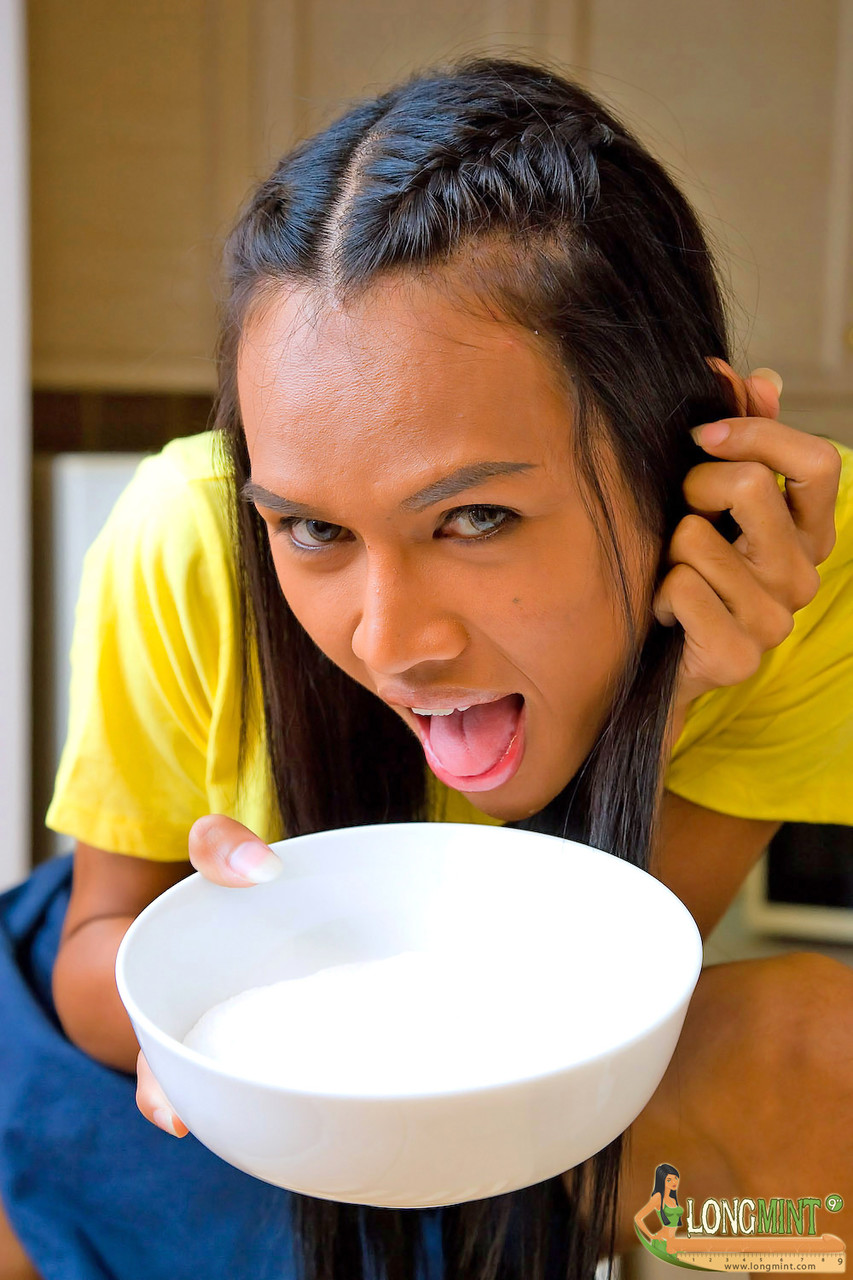 黒髪アジア系シーメールが巨大な偽乳を見せてチンポを愛撫する - ギャラリー情報