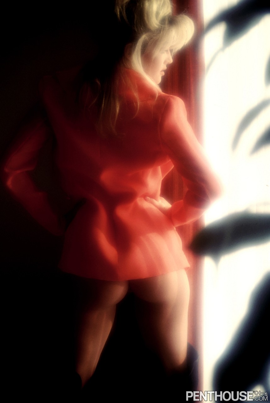 ジェニファー・エマーソン、セクシーな金髪美女、ソファでPenthouseのために裸でポーズ