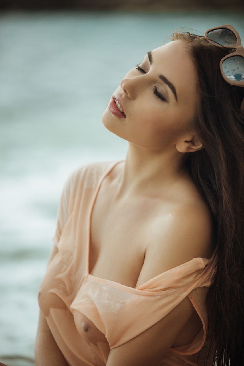 豊満なグラマー娘のニエミラは、濡れた透明な肌を見せ、セクシーな乳首をちらつかせながら、美しいブラUNETTEが海辺で一人ポーズをとる。