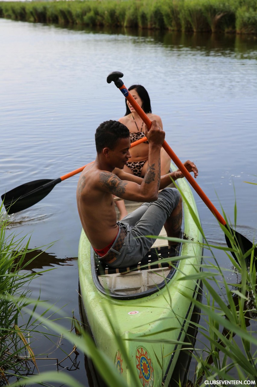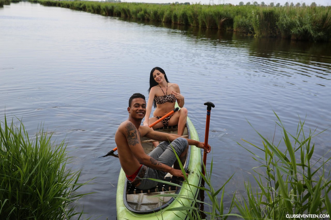 スリムなラテン系ティーンモデル、ダニエラCが川沿いの野外でリアルなセックスを行い、巨大的な黒人ペニスを受け入れ、ちっぱいにおしつけされる。