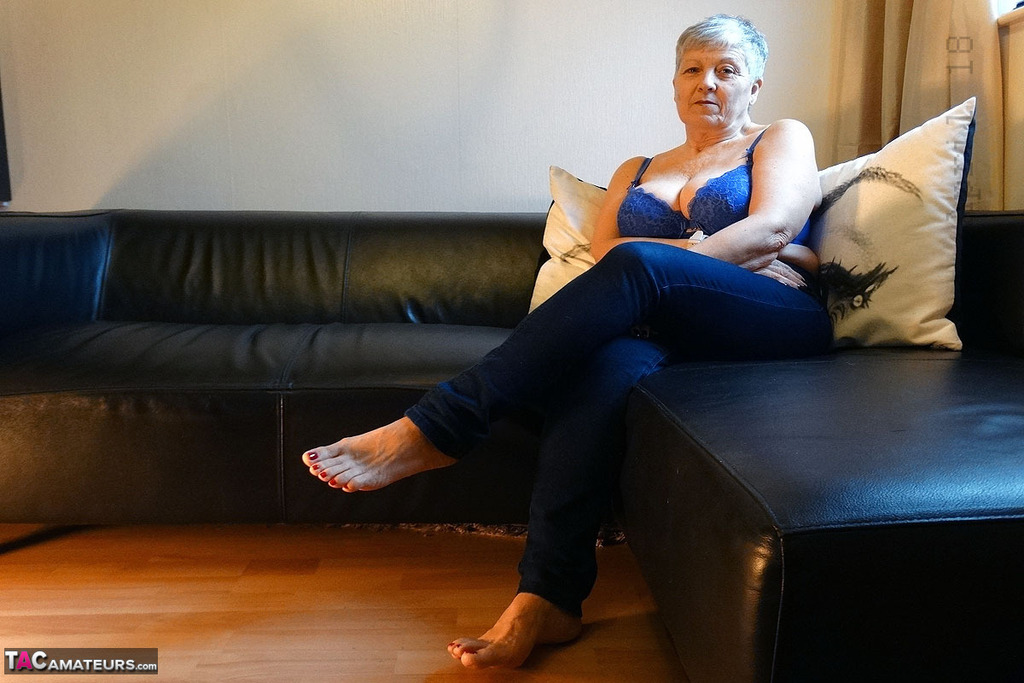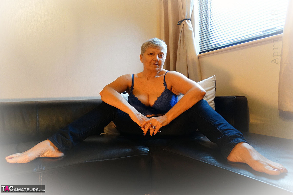 イギリスの祖母サヴァナが彼女の垂れた乳房を愛撫し、絞る - ギャラリー情報
