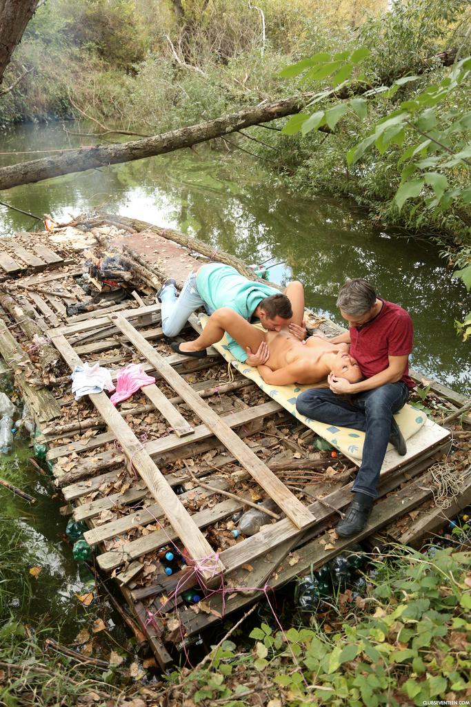 締まった欧州の雌犬ナオミ・ベネットが野外で3P激セックスで激しく犯される - 写真 1 / 16