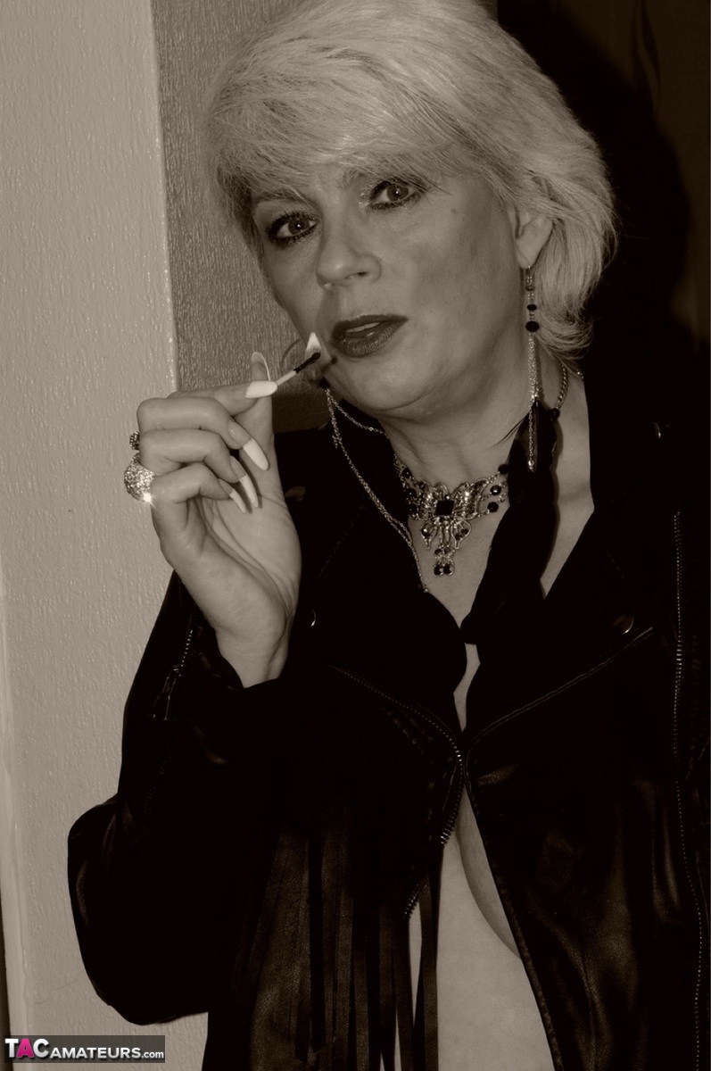 煙草を吸う金髪のディモンティが乳房と膣を披露する - ギャラリー情報