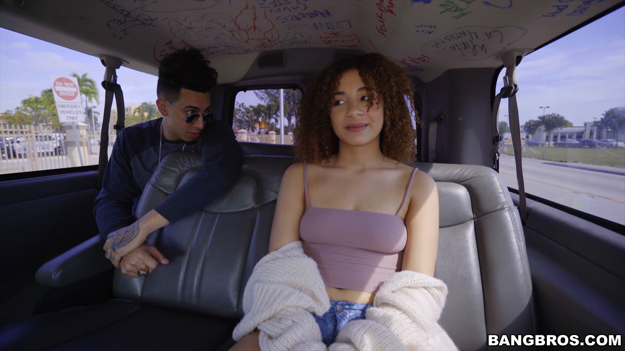巻き髪ラテン系ティーンミアリアムバンクスがバスでヤられている