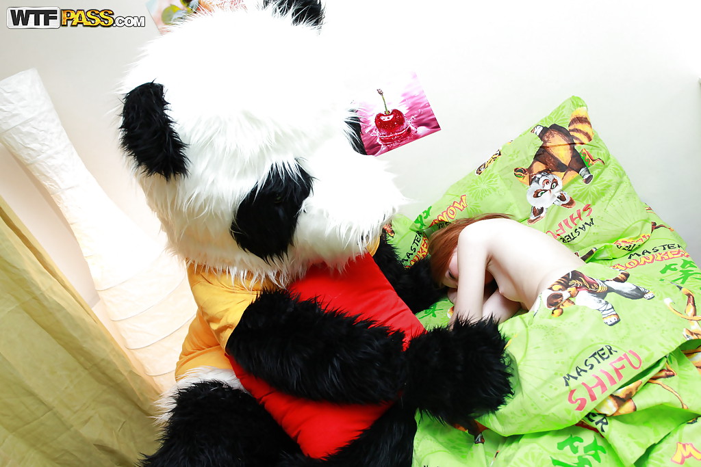 欲求不満な十代少女がパンダのおもちゃとセックス後に偽精液で顔射される
