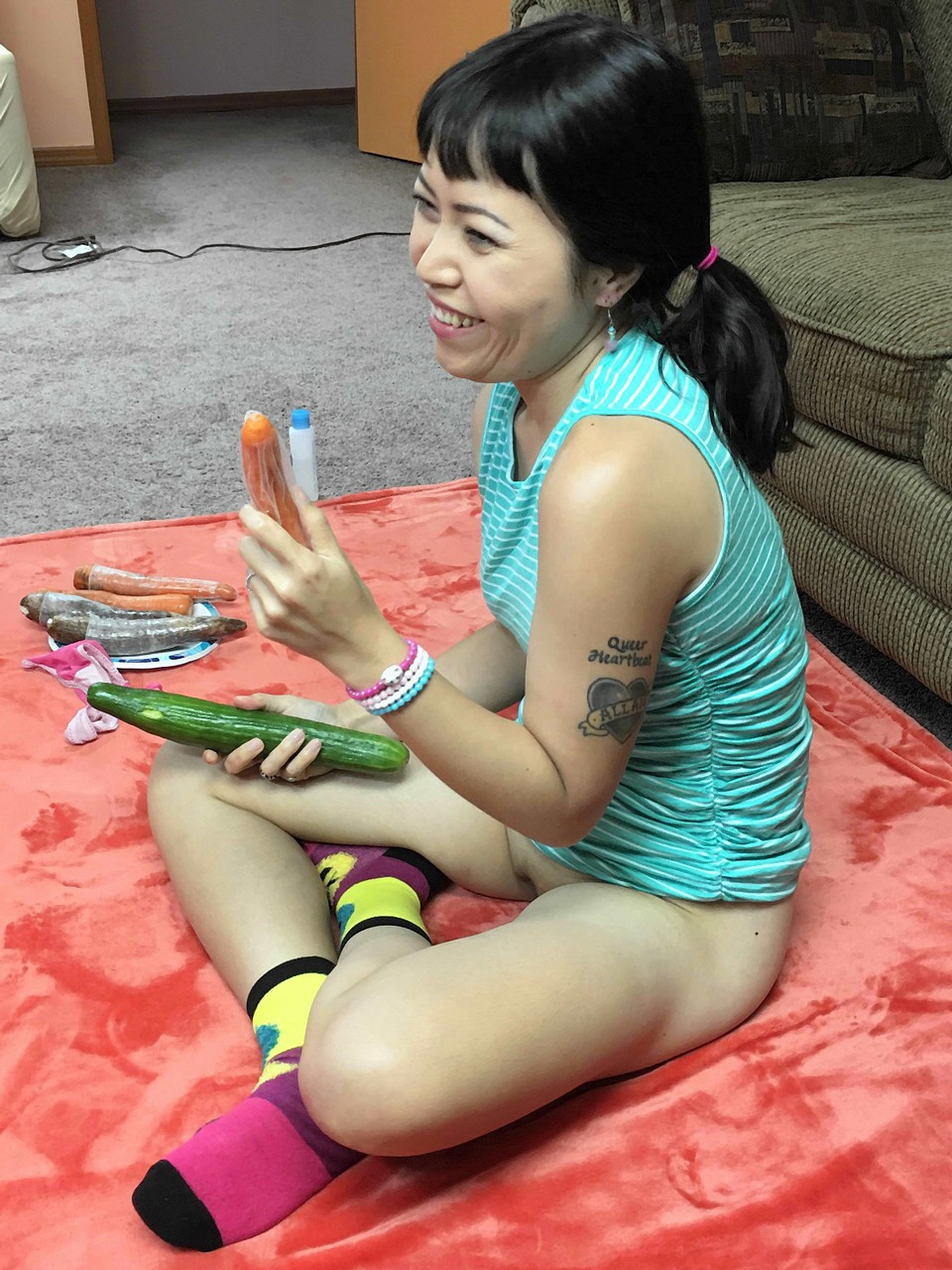Japanese Wife Yuka Ozaki Stuffs Her Twat With Vegetables After Lifting Dress