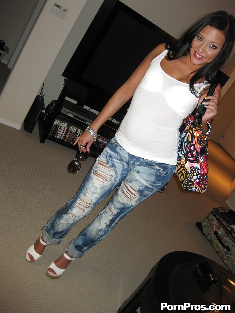 Home Jeans Danni Dillion Strips Jeans And Panties To Expose Her Hairy Pussy
