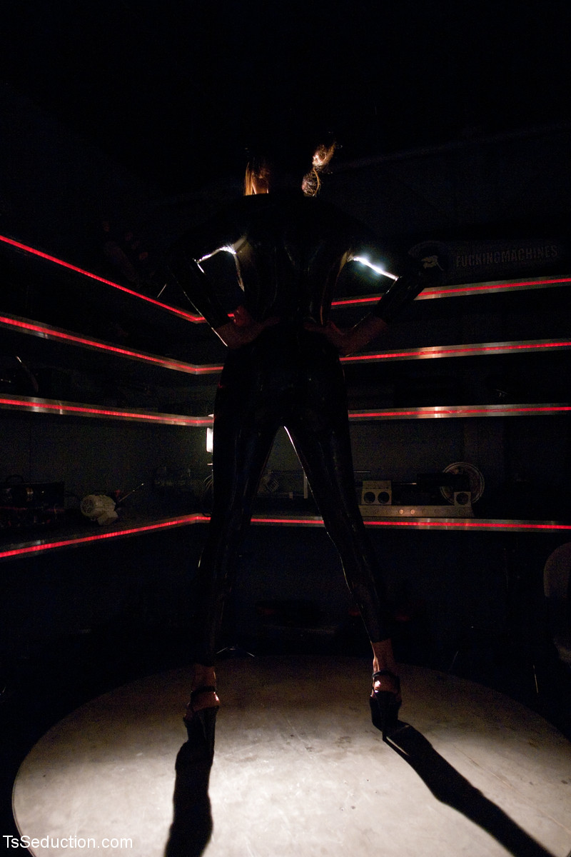 TS seduction heats up as Yasmin Lee’s big shemale cock dominates Jesse Carl in latex—frottage, ladyboy on male action, and hot transsexual pics await.