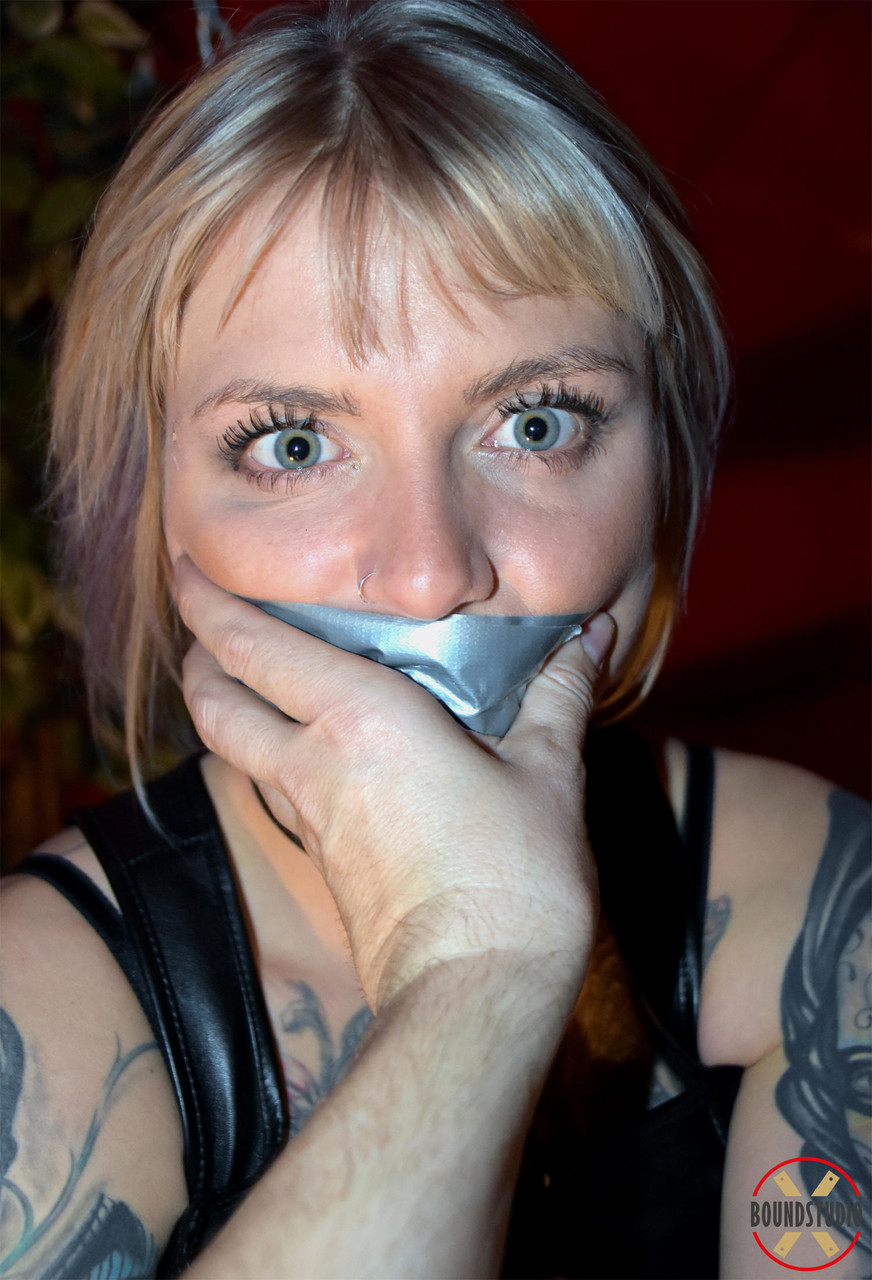 Inked Blonde Roxxxi Manson Quieted With Duct Tape While Bound In Leather - Photo 1 / 16