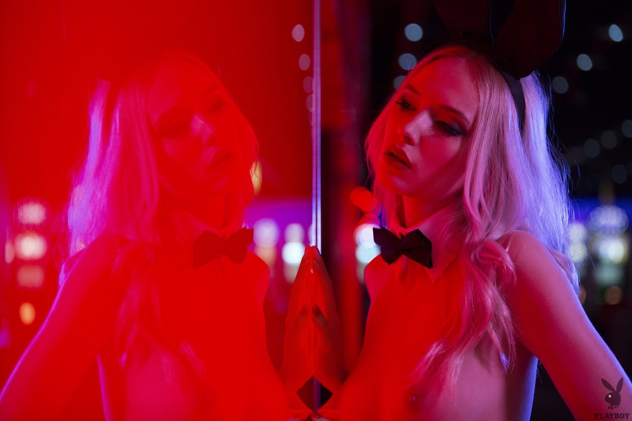 Centerfold Veronika Skylee Strips Red Lingerie To Pose Naked