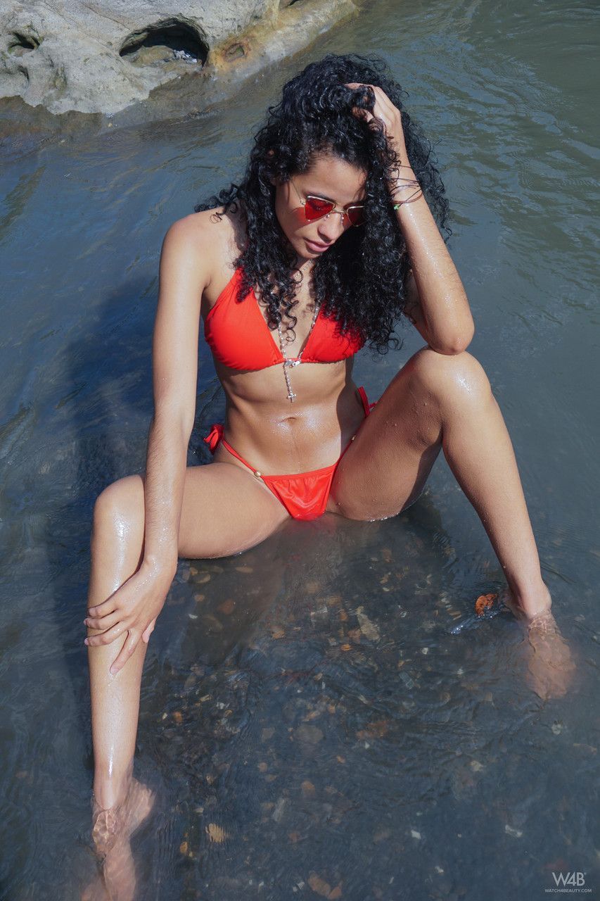 Curvy ebony Mia Nix flaunts her Latina teen pussy and big ass outdoors, playing in wet mud in a tiny bikini—skinny, petite, cute, and beautiful.