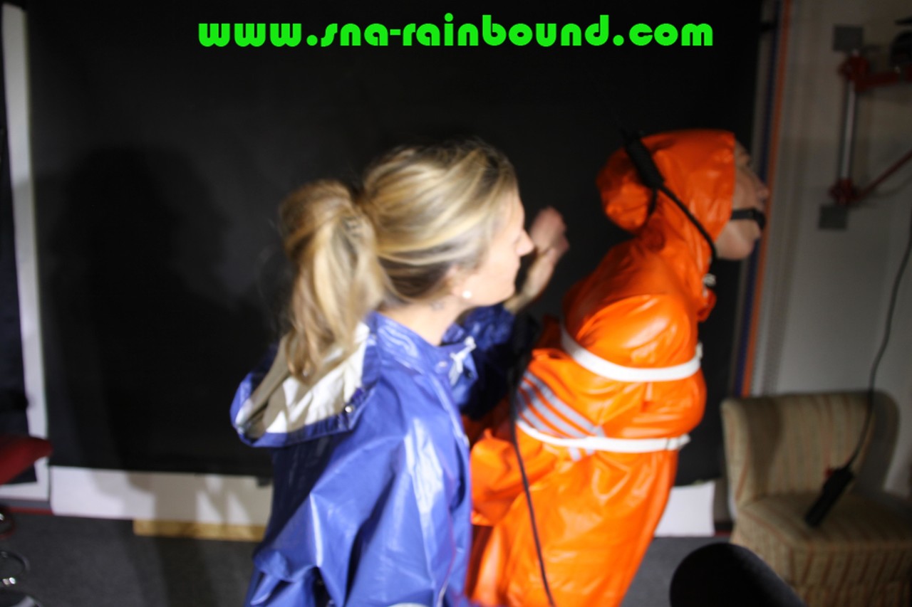 Gagged White Girl Tied Up In Lesbian Nylon Rainwear Domination - Gallery Information